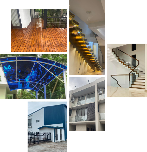 At HK Holdings, we deliver high-quality custom solutions in construction and design. Our recent projects include durable steel and glass staircases, weather-resistant roofing, stylish canopies, secure yet elegant grills and fences, and natural wood decking. Each project showcases our commitment to craftsmanship, safety, and client satisfaction.